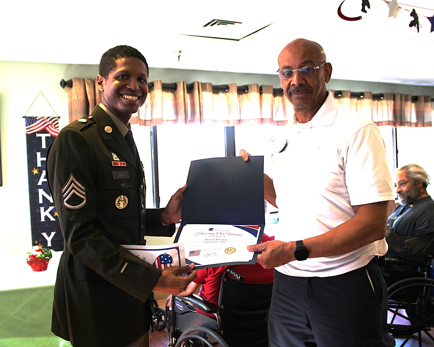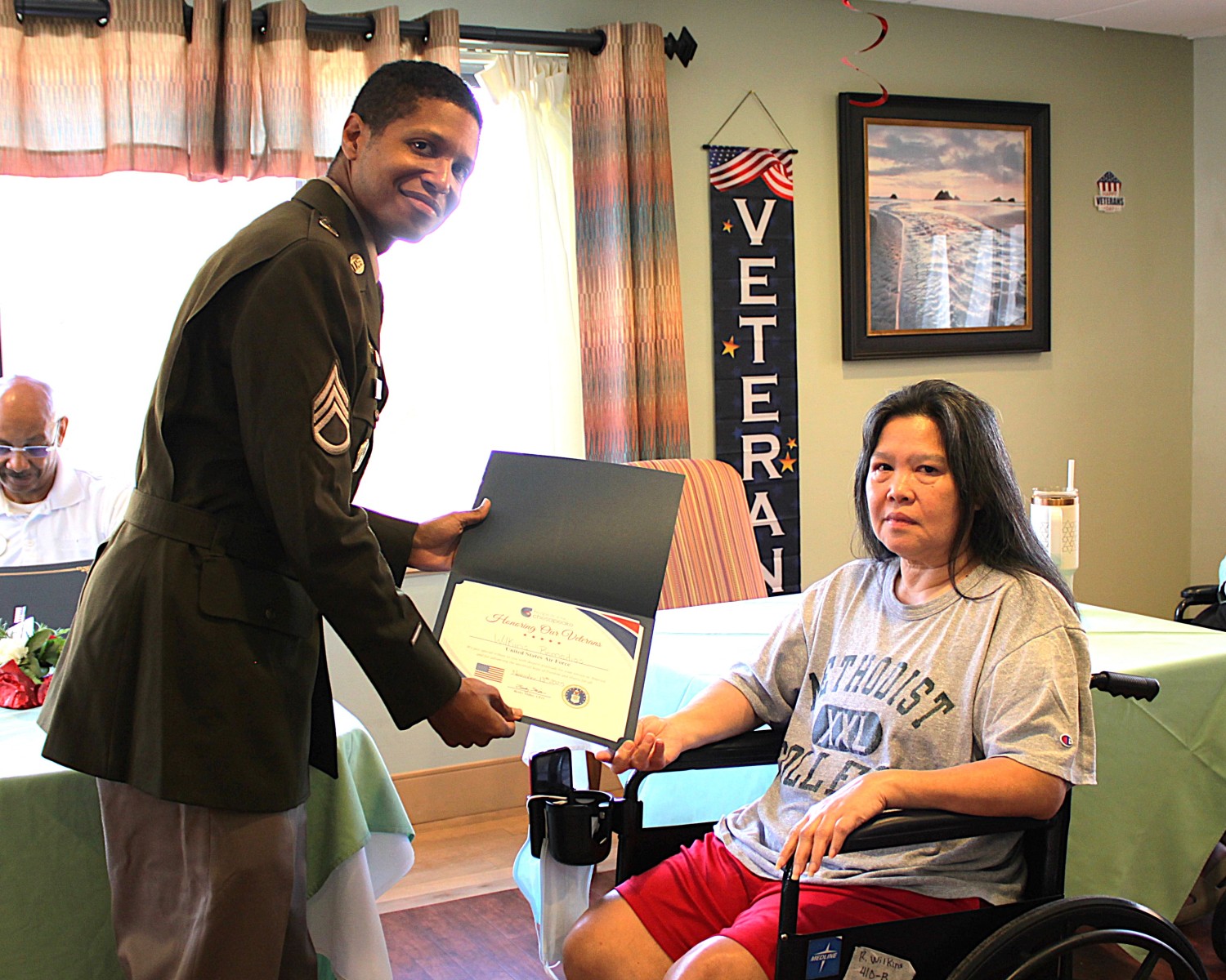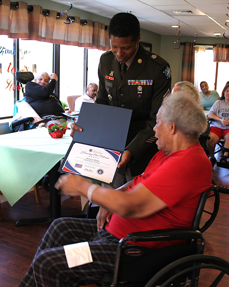 Group Honor Salutes – In partnership with our local community healthcare partners, we work together to salute all Veterans residing at skilled nursing and assisted living centers with a recognition ceremony. This collective experience brings together like-minded organizations to honor those who have served our country.